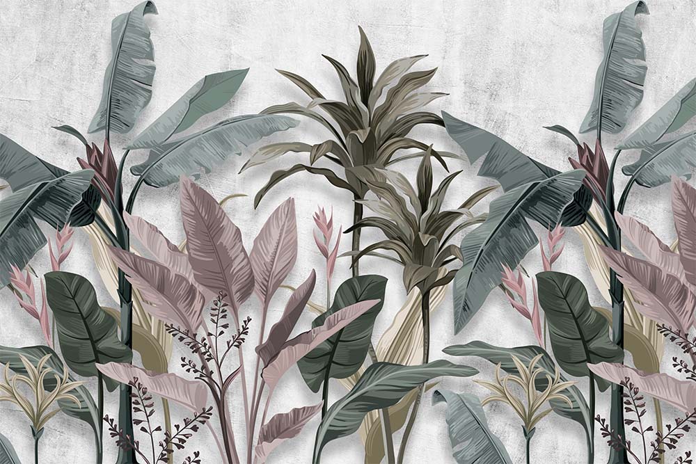 • Soft Renklerinde Tropikal Ağaçlar Duvar Kağıdı 3 boyutlu şekilde satın alın!