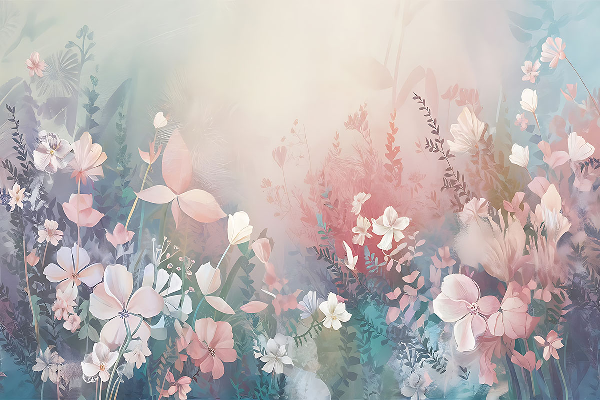 • Soft Tonlarda Çiçekler Duvar Kağıdı , Çiçek Desenli Duvar Posteri 3 boyutlu şekilde satın alın!