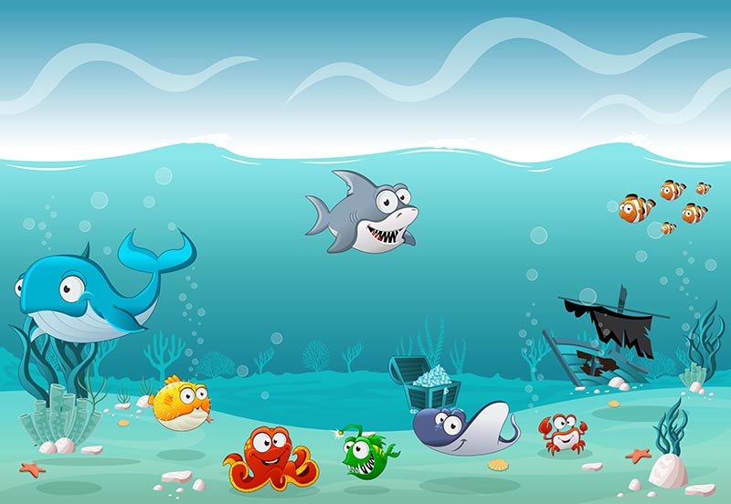• Su Altında Sevimli Balıklar duvar Kağıdı 3 boyutlu şekilde satın alın!