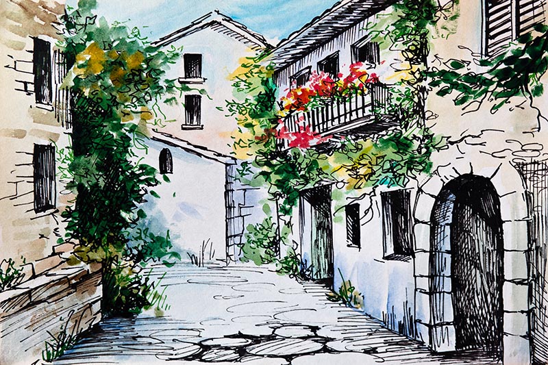 Sulu Boya Çiçekli Sokak Duvar Kağıdı
