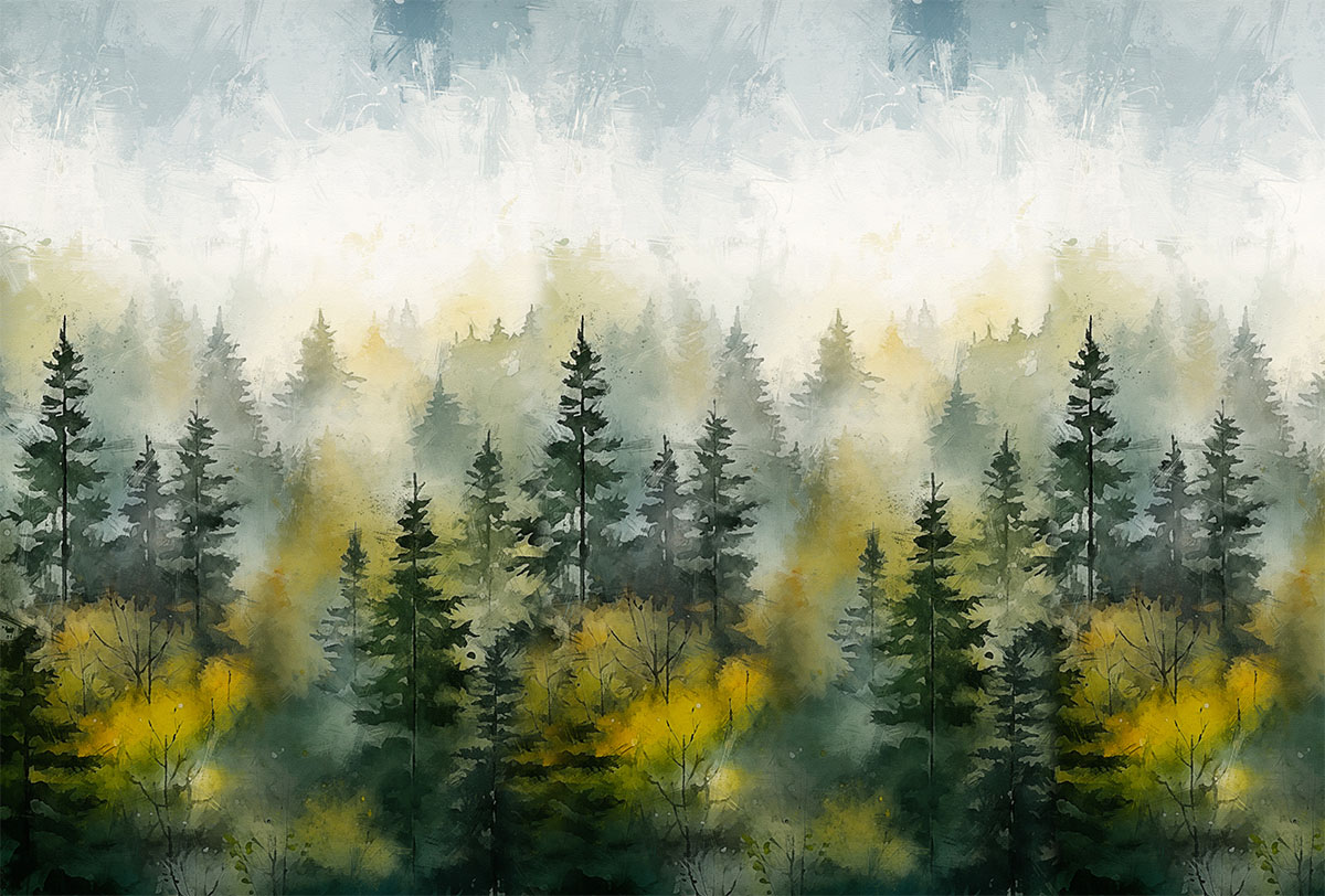 • Sulu Boya tarzında Renkli Ağaçlar Duvar Kağıdı 3 boyutlu şekilde satın alın!