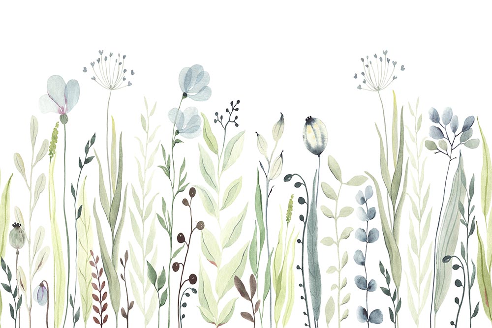Sulu Boya Yapraklar ve Çiçekler Duvar Kağıdı