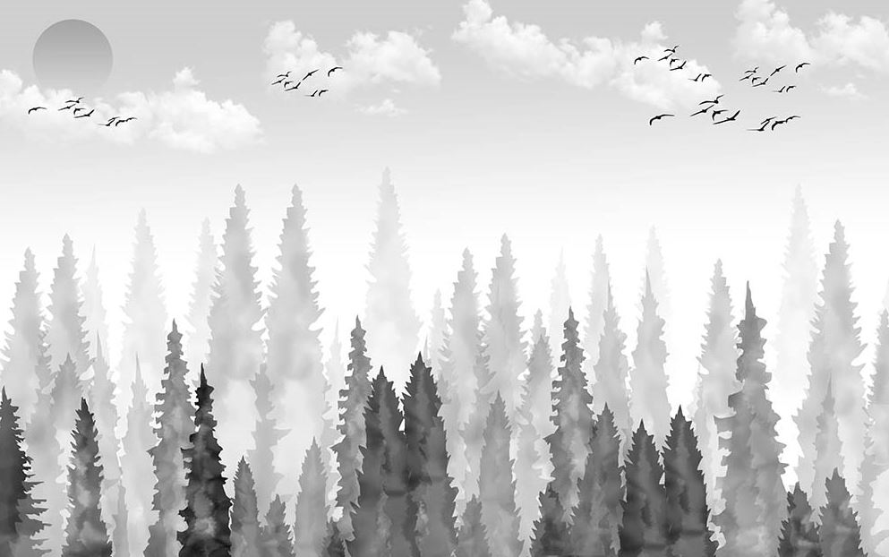 • Suluboya Ağaçlar ve Gökyüzü Manzarası Duvar Kağıdı 3 boyutlu şekilde satın alın!