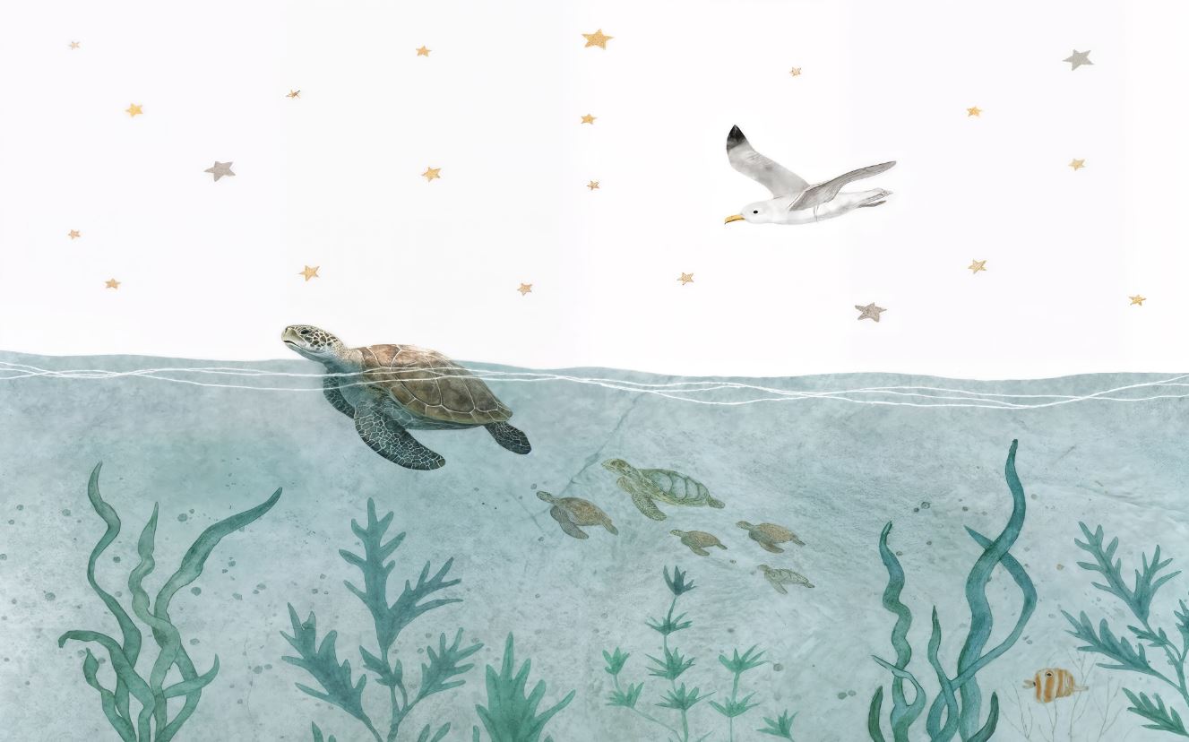 • Suluboya tarz su altında Sevimli Deniz canlıları Çocuk odası duvar kağıdı 3 boyutlu şekilde satın alın!
