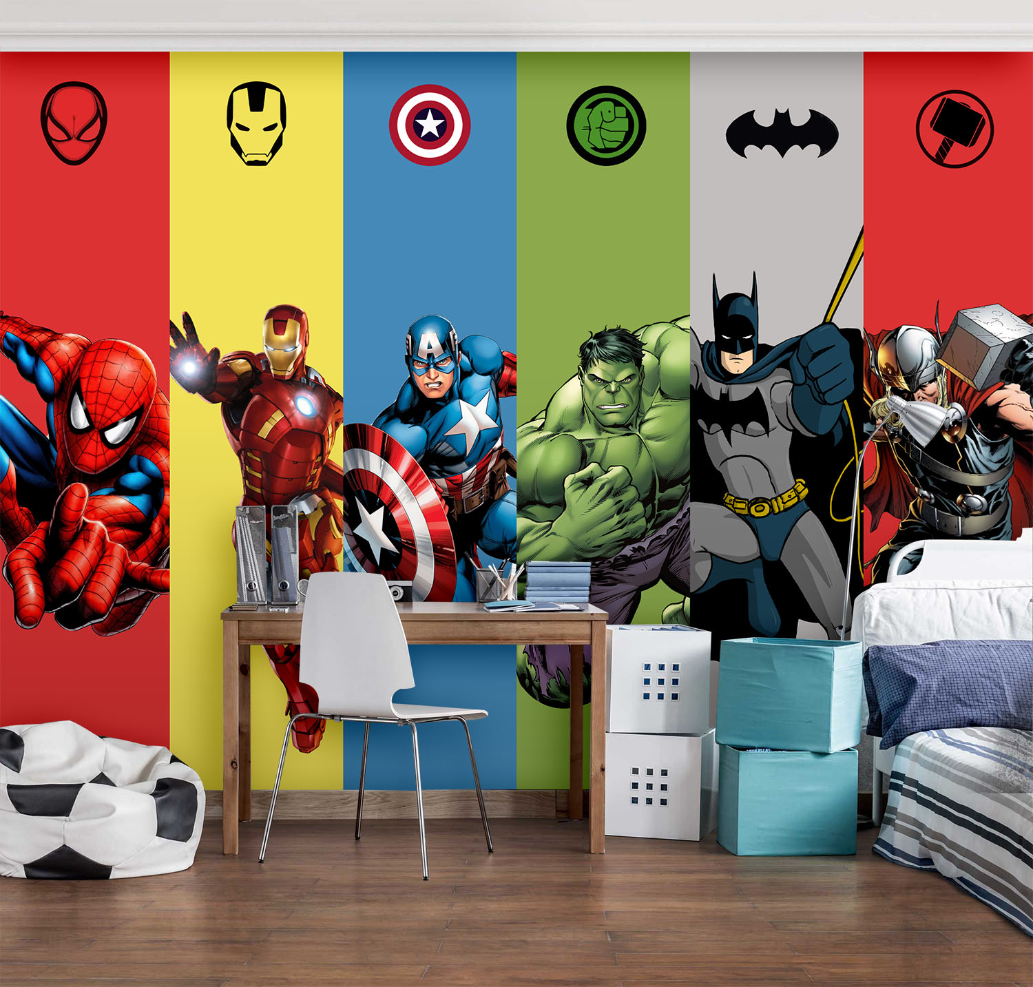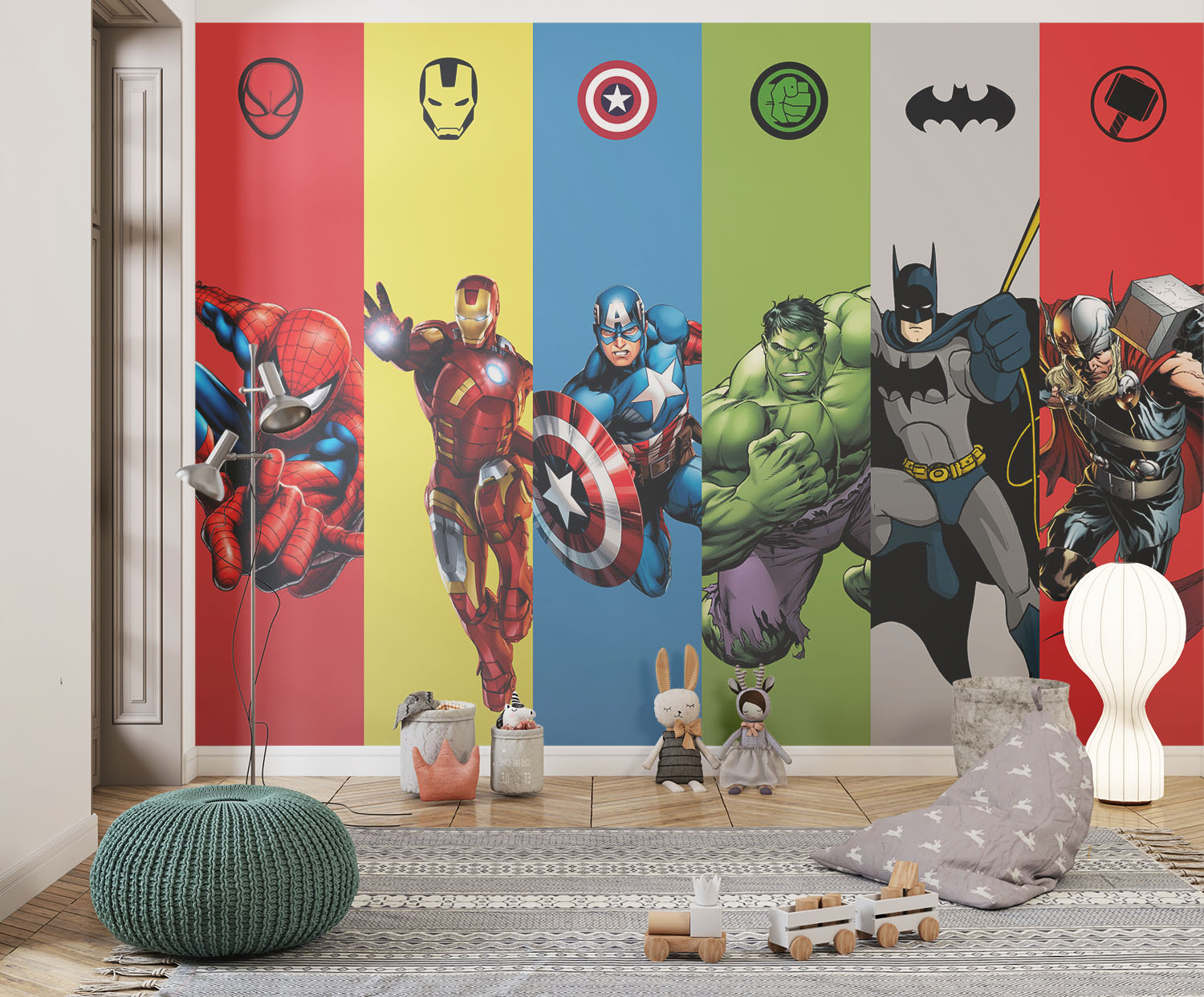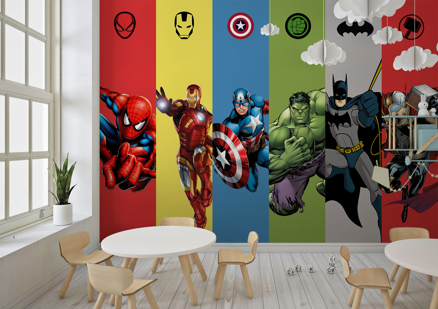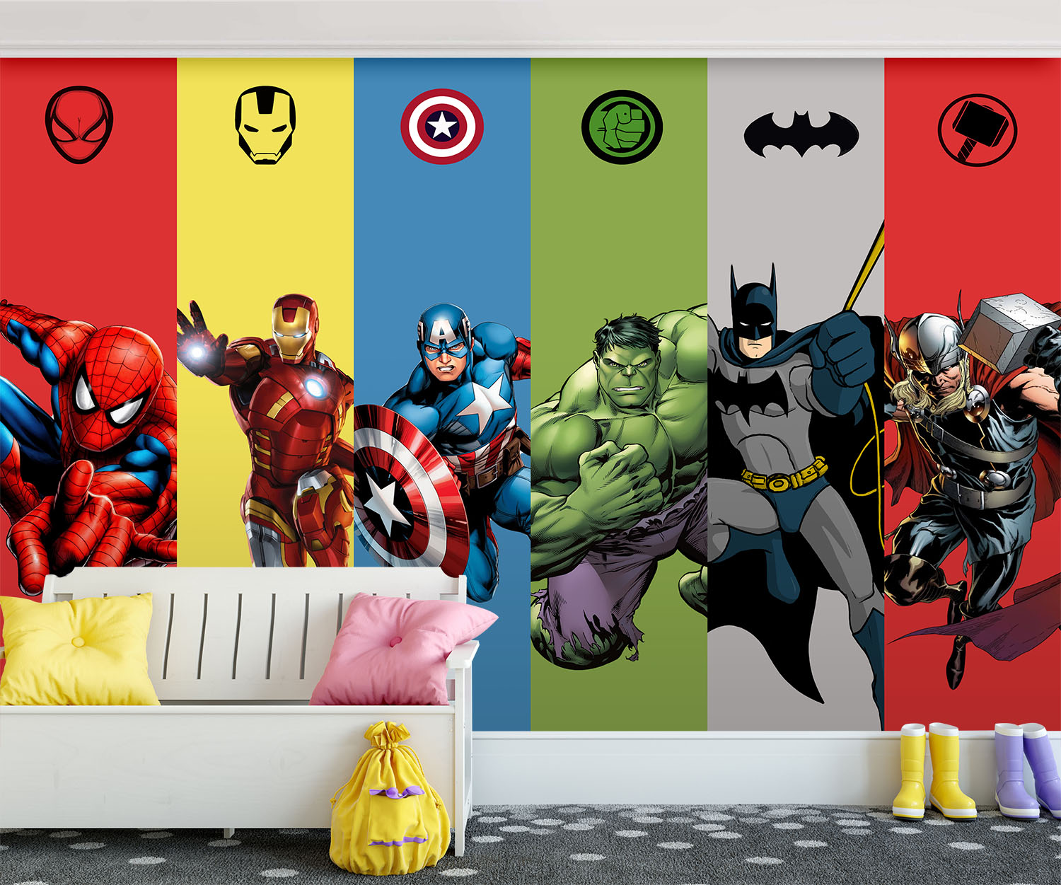 • Süper Kahramanlar Erkek Çocuk Odası Duvar Kağıdı 3 boyutlu şekilde satın alın!