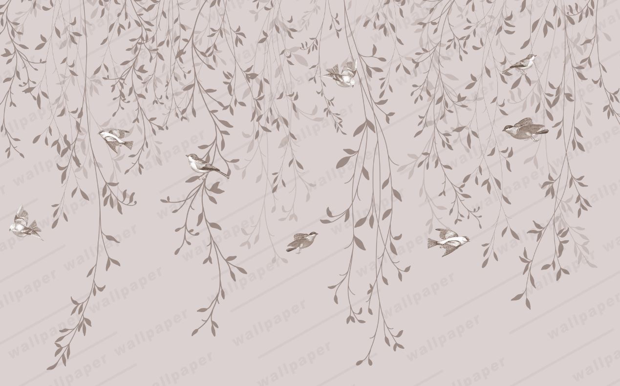 • Tavandan sarkan Dallar ve Kuşlar Vintage Tarz Duvar Kağıdı 3 boyutlu şekilde satın alın!