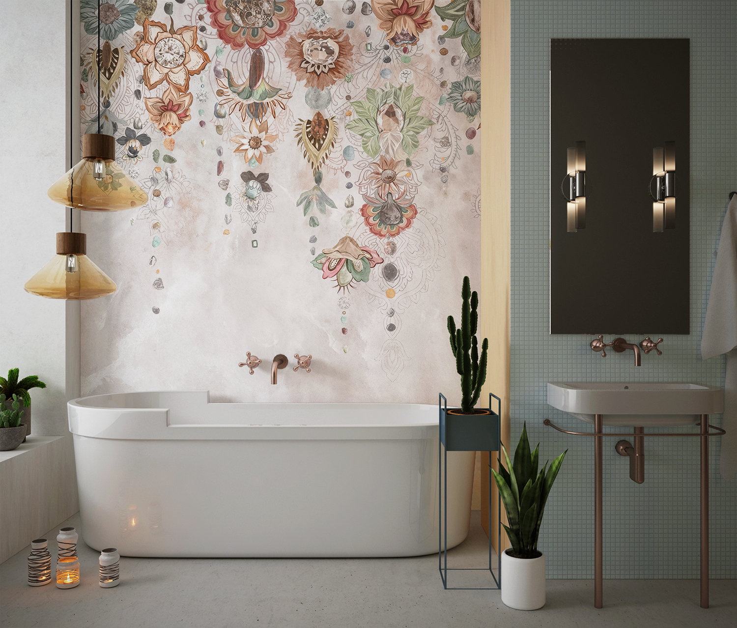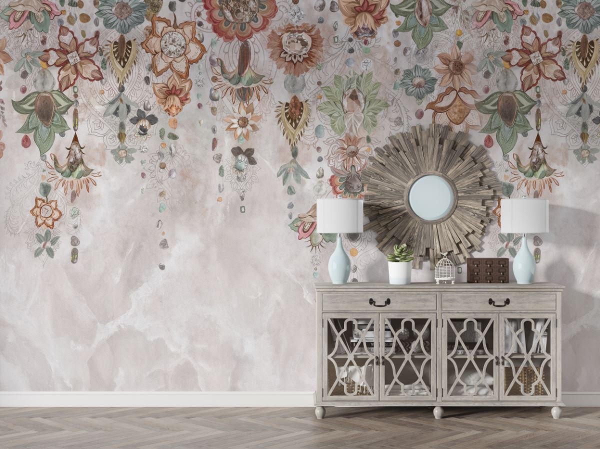 • Tavandan Sarkan Renkli Çiçekler Son Moda Duvar Kağıdı Modelleri 3 boyutlu şekilde satın alın!