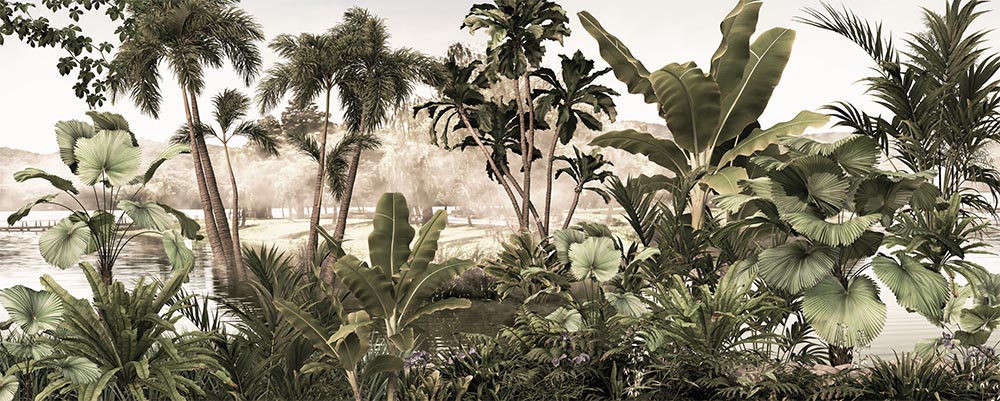 • Tropik Ağaçlar ve Yapraklar Orman Duvar Kağıdı 3 boyutlu şekilde satın alın!