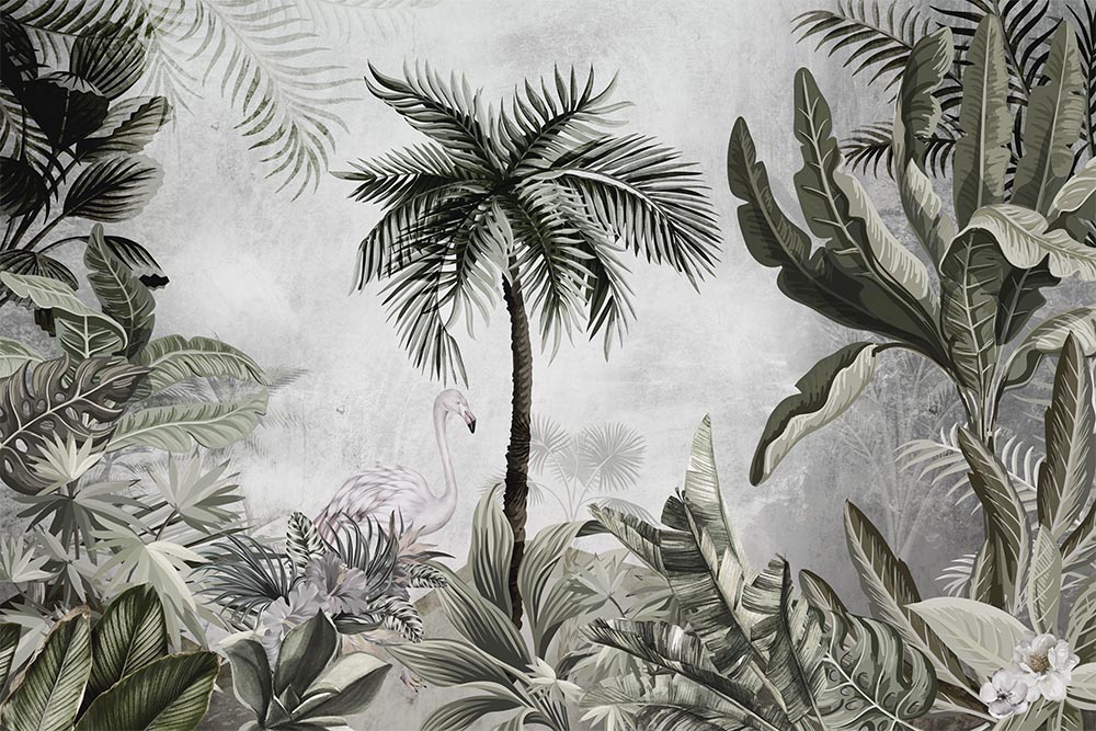 • Tropikal Ağaçlar içerisinde Flamingo Duvar Kağıdı 3 boyutlu şekilde satın alın!
