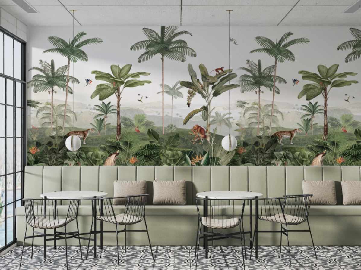 Tropikal Ağaçlar ve Yapraklar Arasında Safari Hayvanları