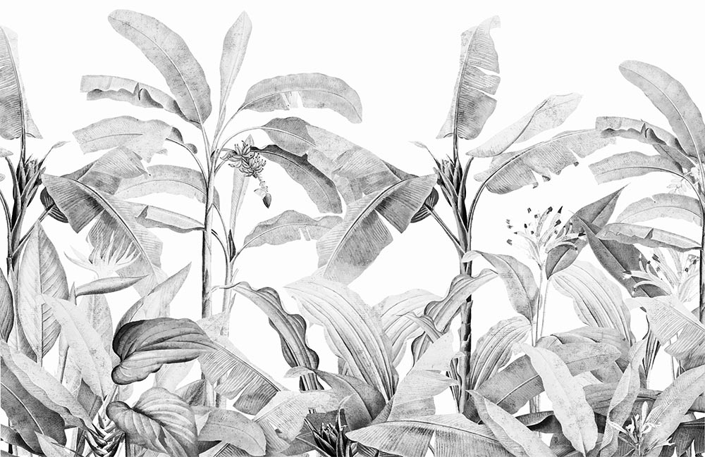 • Tropikal Ağaçlar ve Yapraklar Siyah Beyaz Duvar Kağıdı 3 boyutlu şekilde satın alın!