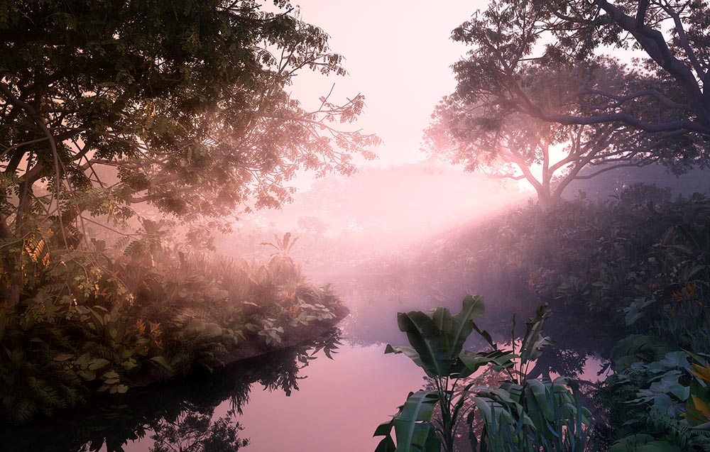 • Tropikal Göl ve Orman Manzarası Duvar Kağıdı 3 boyutlu şekilde satın alın!