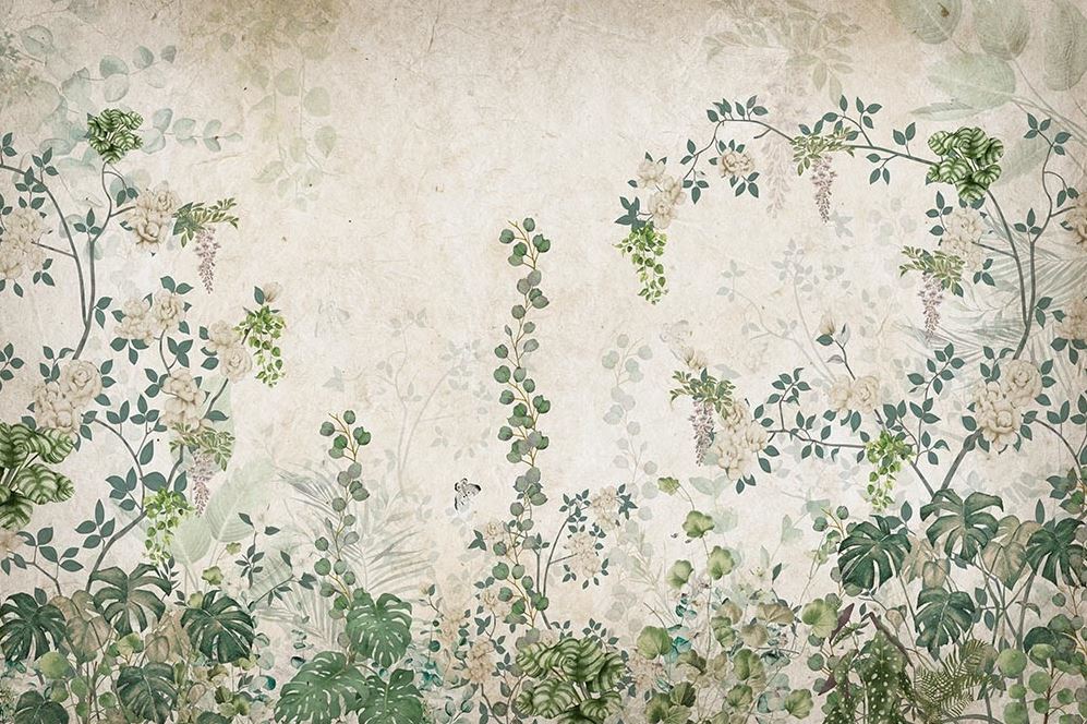 • Tropikal Küçük Çiçekler ve Yapraklar Özel Tasarım Duvar Kağıdı 3 boyutlu şekilde satın alın!