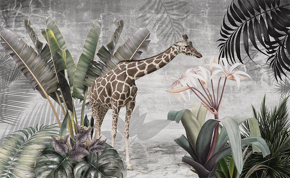 • Tropikal Ormandaki Zürafa Duvar Kağıdı 3 boyutlu şekilde satın alın!