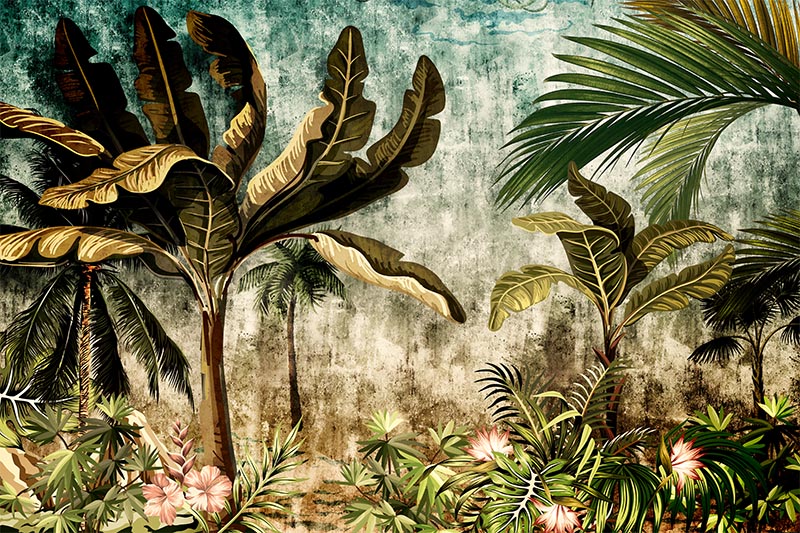 • Tropikal Yapraklar Duvar Kağıdı 55 3 boyutlu şekilde satın alın!
