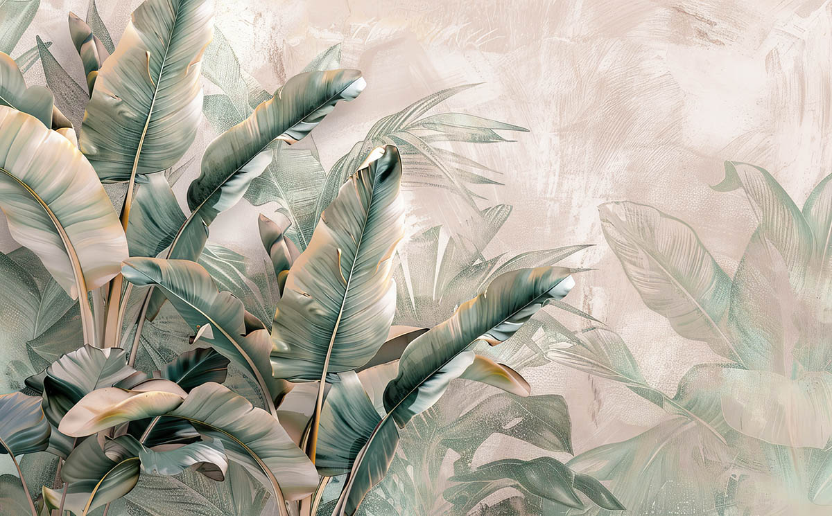 • Tropikal Yapraklar Duvar Kağıdı , Muz Ağacı Yaprakları Duvar Posteri 3 boyutlu şekilde satın alın!