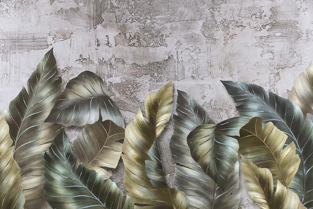 • Tropikal Yapraklar Duvar Kağıdı Vintage Tarz 3 boyutlu şekilde satın alın!