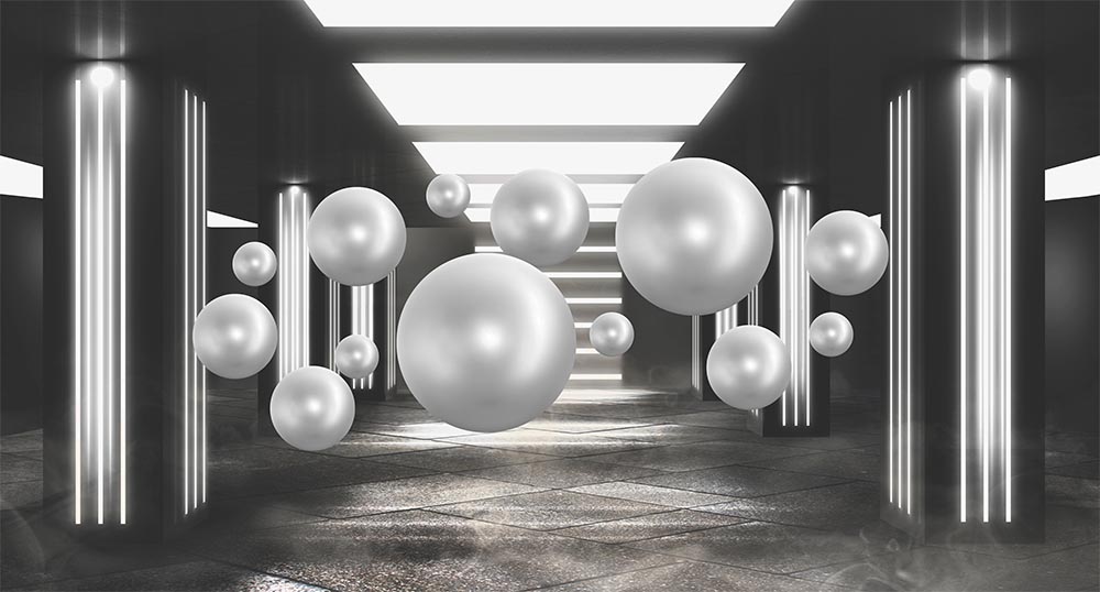 • Tünel içerisinde ışıltılı Toplar 3D Duvar Kağıdı 3 boyutlu şekilde satın alın!