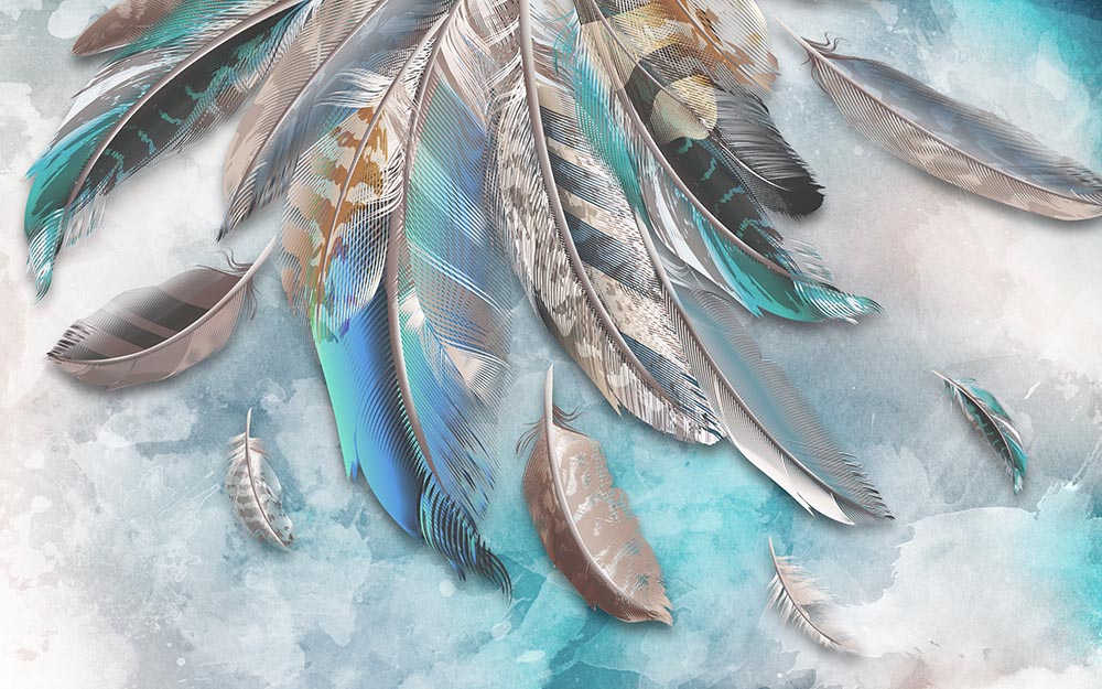 • Turkuaz - Gri Tonlarında Tüylü Duvar Kağıdı 3 boyutlu şekilde satın alın!