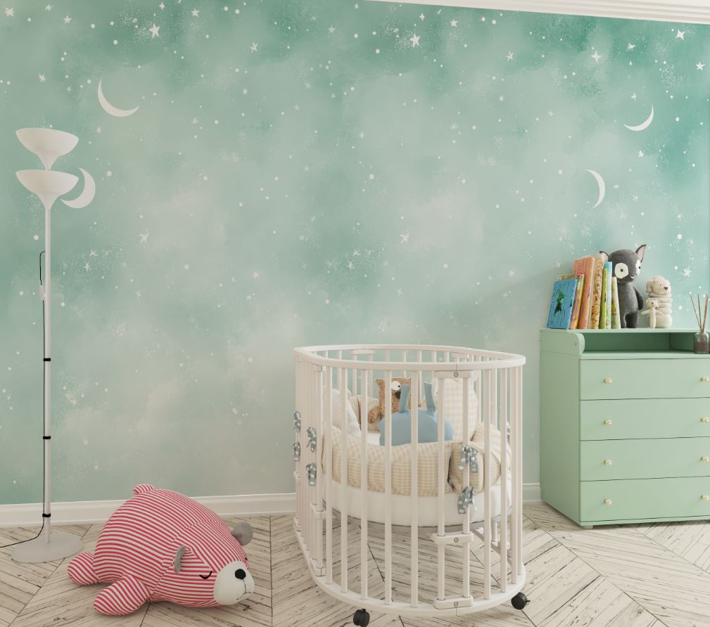 Turkuaz Tonlarda Gökyüzü ve Yıldızlar Çocuk Odası Modelleri