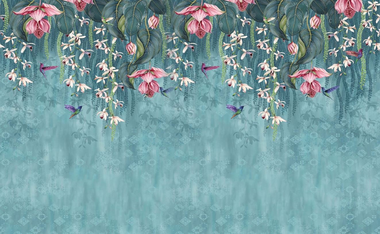 • Turkuaz Zemin Çiçekler Vintage Duvar Kağıdı 3 boyutlu şekilde satın alın!