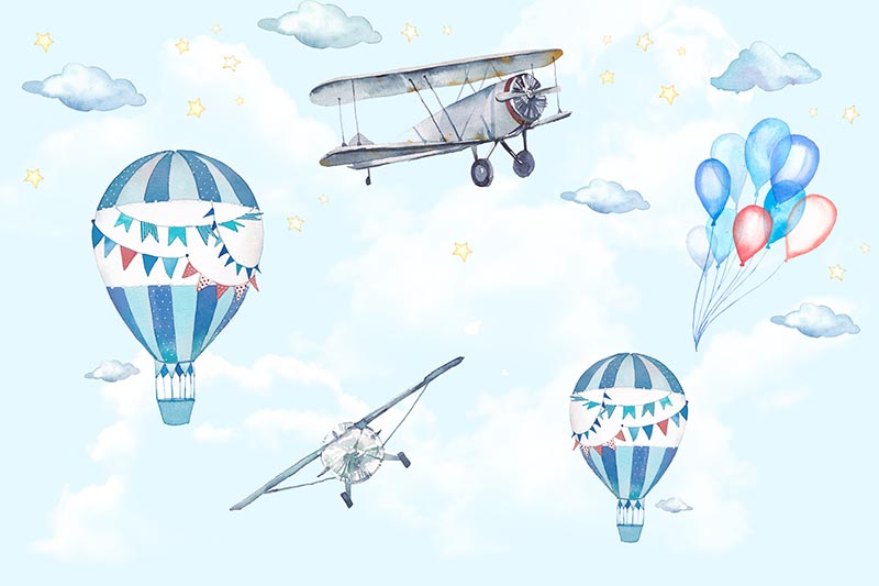 Uçaklar ve Balonlar Çocuk Odası Duvar Kağıdı