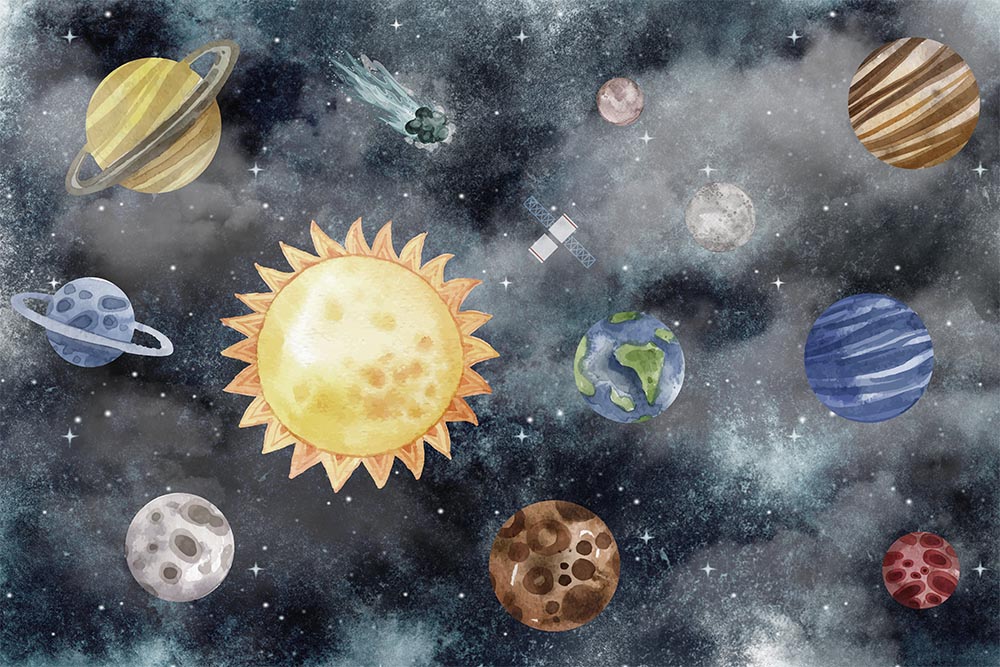• Uzay Gezegenler Galaksi Çocuk Odası Duvar Kağıdı 3 boyutlu şekilde satın alın!