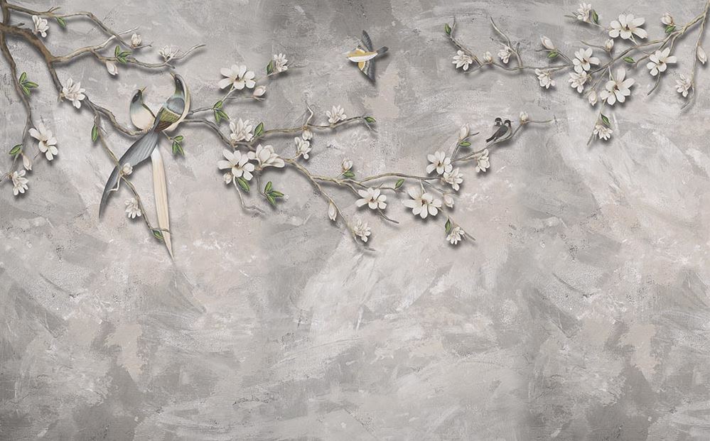 • Vintage Ağaç dalları ve Kuşlar Duvar Kağıdı 3 boyutlu şekilde satın alın!