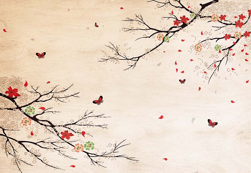 • Vintage Dallar ve Küçük Çiçekler Duvar Kağıdı 3 boyutlu şekilde satın alın!