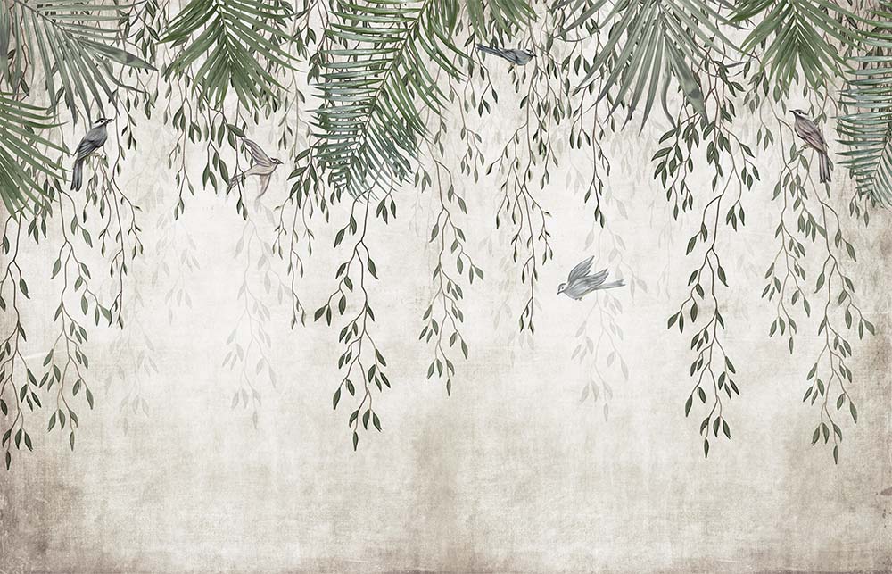 Yatak Odası Duvar Kağıdı Kuşlar ve Yapraklar