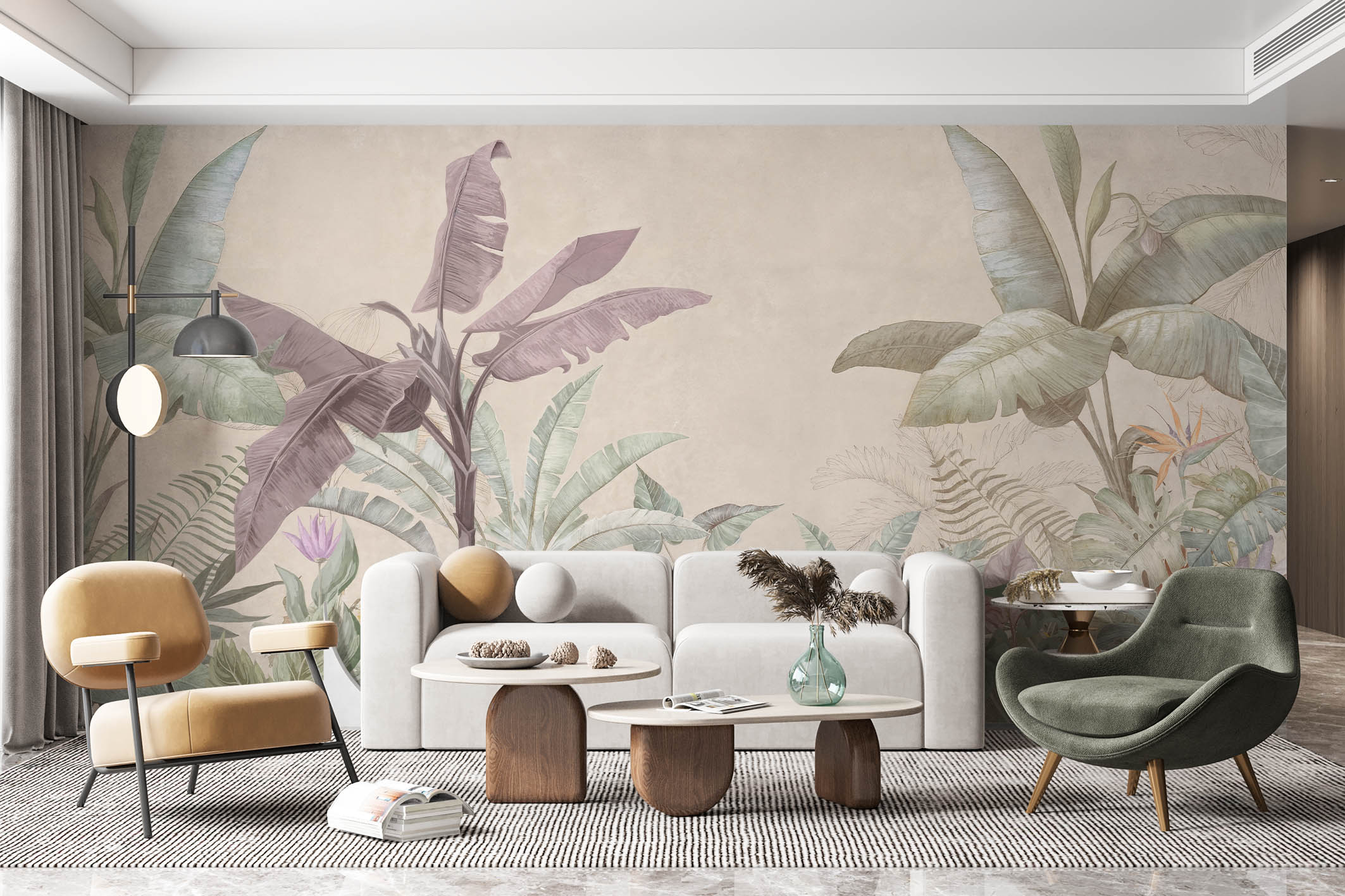 • Yatak Odası Tropikal Ağaçlar Duvar Kağıdı 3 boyutlu şekilde satın alın!
