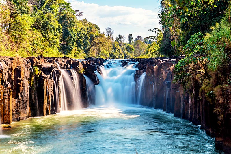 Yeşil Ağaçlar Arasında Kayalar ve Şelale