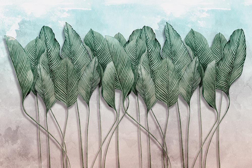 • Yeşil Renk Tropikal Yapraklar Duvar Kağıdı 3 boyutlu şekilde satın alın!