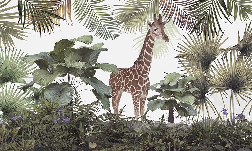 • Zürafa Ağaçların Arasında Tropikal Duvar Kağıdı 3 boyutlu şekilde satın alın!
